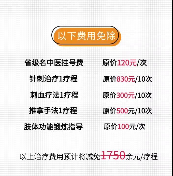 为响应党和国家政策,推动医疗扶贫,助力健康扶贫工作,张卫华教授本着“大爱无边,医者仁心”的精神,特发起针对中风偏瘫患者“免挂号费、减免治疗费”的优惠活动。本次活动时间为2020年7月2日-2020年8月10日,拟招募该病患者60名。