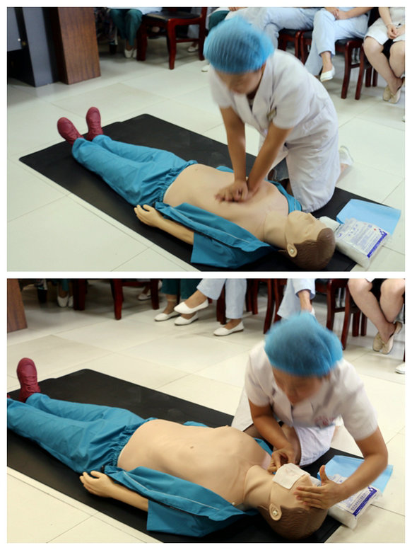 为牢固树立“病人中心”理念,时刻把生命安危放在心上,不断提高医务人员院内急救应急事件处置能力,该院用一个月时间开展了“徒手心肺复苏”技能操作培训,经规范培训、考试比赛、总结提高,达到了“全员参与、全体练兵”的目的。通过初赛“海选”,最终有八名医务人员脱颖而出,进入当天决赛。