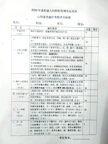 渭城区卫健局医政科科长张永娥说:“根据国际形势需求,进一步强化医疗安全。让全民熟悉心肺复苏操作技能,医务人员要掌握心肺复苏技能,达到‘人人学心肺复苏,个个会心肺复苏的技能’的目的。”
