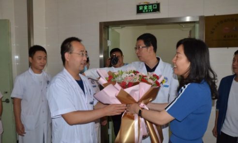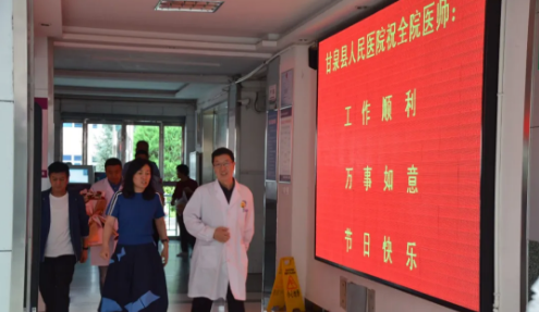2020年8月19日是我国第三个“中国医师节”8月19日上午,甘泉县人民政府副县长马晓翠、县卫计局副局长王俊泉一行在医院院领导班子成员的陪同下,先后来到外科、神经消化内科、妇产科、急诊科,慰问了奋战在工作岗位的医师们,向他们送上鲜花及苹果,并致以节日的祝福。感谢他们为抗击新冠疫情、医院发展和健康甘泉建设所作出的贡献。副县长马晓翠指出,设立“中国医师节”是党和人民给予医务人员的特殊荣耀,希望大家以此为新起点,继续保持高昂的工作热情,努力提高医疗技术水平,不断提升医疗服务质量,满足百姓日益增长的健康需求,更好的为全县百姓的健康作出贡献。