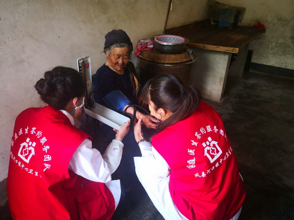 这支团队主要由乡镇卫生院的三名80.90后的医务人员组成,就是这么一支年轻的团队不仅要承担辖区312户932人的签约服务工作,还要参与医院的疫情防控、基本医疗、公共卫生等常态化工作,面对高强度的工作,她们没有退缩,面对疫情,面对群众的恐慌心理她们没有退缩,而是想着改变“白衣天使”的白,用红色去感染大家,红色象征着热情象征着太阳,穿上它更显朝气、青春与活力。就这样我们在白色的工作服上套上了印有“河口镇签约服务团队”的“红马甲”。