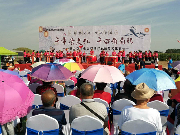 9月3日,“魅力空港·生态空港”首届葡萄文化节在空港新城底张街道顺陵村开幕,文化节将持续3天,期间将举行唐装游园采摘体验、葡萄市集、唐朝“酒晕妆”体验等活动,让市民在体验唐文化的同时品尝鲜美的葡萄。
