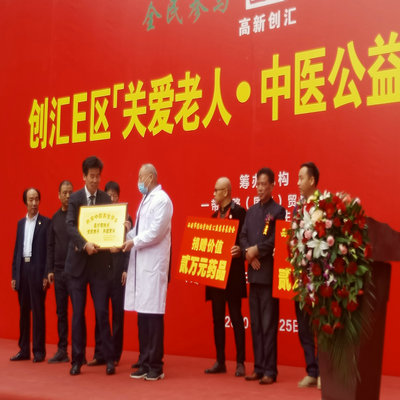 接着,在《喜洋洋》的音乐声中,为百位75岁以上老人发放了大红包;举行了100张免费就医贵宾卡和价值3万元的应急药品捐赠受赠仪式。