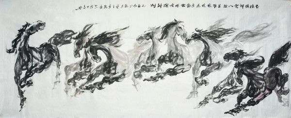 据了解,由于地方小、画幅大、难操作,创作期间,在古琴伴奏下,他集中精力、连续作业,坚持站在椅子上完成了部分创作,现场帮助的友人不时提醒他注意安全。李翰迪说:“这幅八骏图是为时代代言,展示时代的精神和风采,象征中华民族走向繁荣、走向富强,祝中华民族百业腾飞,兴旺发达。”