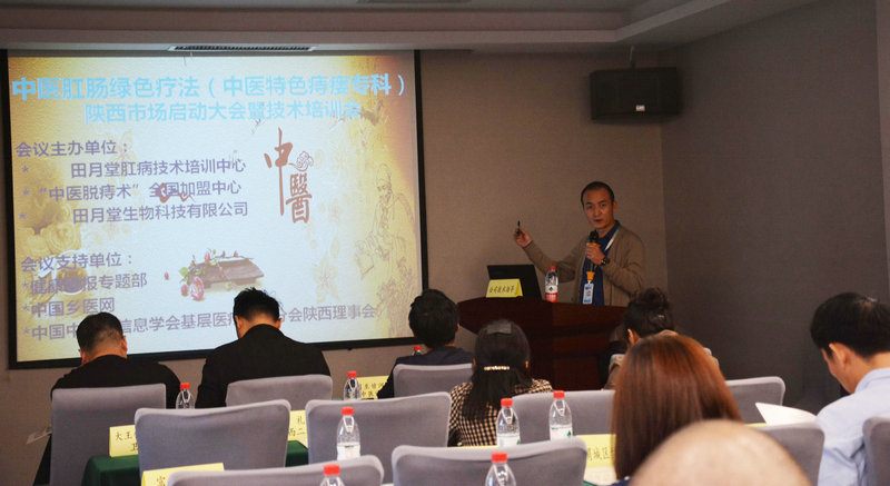 中国乡医网讯(王芳玲) 5月15日下午两点,由田月堂肛病技术培训中心、“中医脱痔术”全国加盟中心、田月堂生物科技有限公司联合主办,健康导报专题部、中国乡医网、中国中医药信息学会基层医疗服务分会陕西理事会协办的中医肛肠绿色疗法(中医特色痔瘘专科)陕西市场启动大会暨技术培训会在咸阳盛大召开。田月堂生物科技有限公司技术指导张老师、公司助理邵总,中国中医药信息学会基层医疗服务分会陕西理事会副秘书长、健康导报专题部主任、中国乡医网副总编、中国乡医杂志副主编刘俊程出席了启动大会,基层中医老师、地区经理以及准备参与本体系的区域经理和参与本体系的其他省区的经理代表30余人参加了此次会议。会议由中医肛肠绿色疗法西北区域经理赵新庆主持。