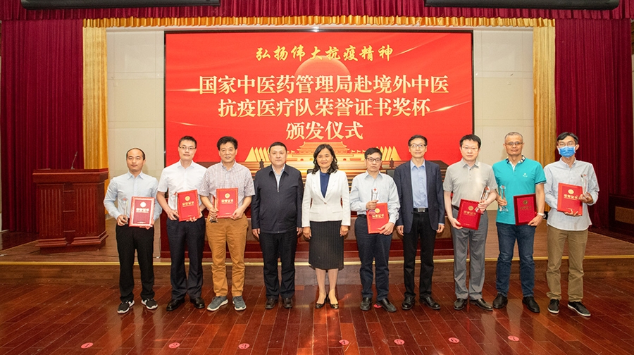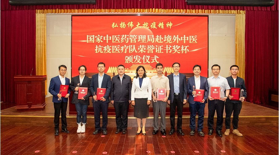 活动中,余艳红、孙达、柳长森为医疗队成员颁发荣誉证书和纪念奖杯。李浩、刘震、刘祖发代表医疗队分享了境外开展救治工作的经验与体会,他们表示,在境外抗疫期间,前方的党建引领和后方的大力支持坚定了队员们战胜疫情的信心,医疗队取得的成绩充分体现了中医药抗疫的优势和特色,彰显了中医药人的文化自信、奉献精神和专业素养,今后将继续总结经验、发挥优势、努力前行,为抗击疫情作出更大贡献。