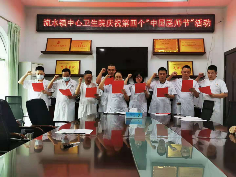 (中国乡医网讯 通讯员 唐春举)2018年国务院将8月19日设立为“中国医师节”,2021年8月19日是第四个中国医师节,主题是“百年华诞同筑梦,医者担当践初心”。为了号召广大医务工作者崇尚先进、见贤思齐,立足岗位、奋发有为,深入贯彻党的卫生健康工作方针,践行“敬佑生命、救死扶伤、甘于奉献、大爱无疆”的崇高精神和伟大抗疫精神,为推动卫生健康事业高质量发展不懈奋斗。下午,陕西省安康市汉滨区流水镇中心卫生院召开了2021年中国医师节庆祝大会。