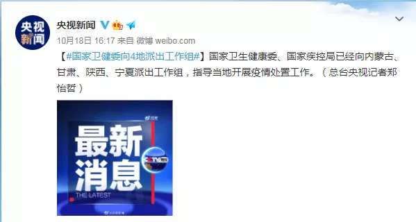 国家卫生健康委、国家疾控局已经向内蒙古、甘肃、陕西、宁夏派出工作组,指导当地开展疫情处置工作。