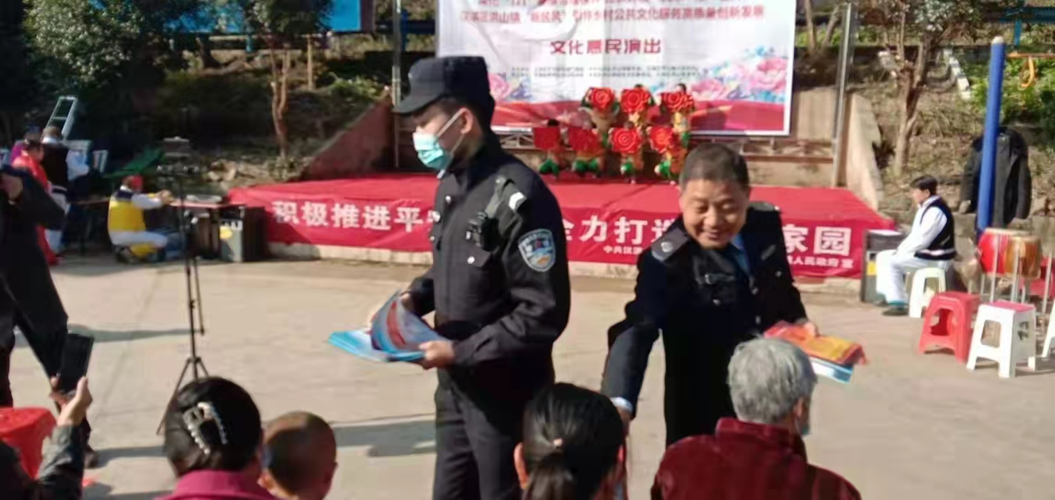 中国乡医网讯(通讯员 茫野 何龙佩)11月25日,阳光明媚,碧空如洗。安康市汉滨区洪山镇按照区委政法委平安建设“九率一度”集中宣传、统一安排要求,洪山司法所联合汉滨区检察院、汉滨区司法局、恒口法庭、洪山派出所、洪山交警队、洪山镇文化站,结合区文广局在石转中心社区举办“戏曲进乡村,文化润民心”文艺演出活动契机,积极开展“321”基层治理模式推行、“九率一度”提升、扫黑除恶、防范非法集资、打击“黄、赌、毒”违法犯罪、反诈等宣传活动。