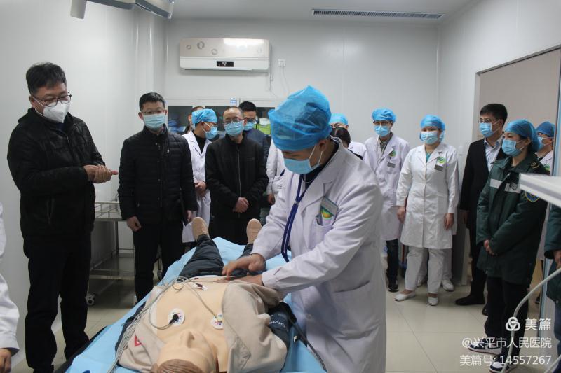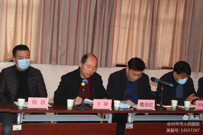 市卫健局主管领导于硕委员在致辞中表示,急救体系是公共卫生服务体系的重要组成部分,规范建设创伤急救中心,对不断提升兴平市创伤救治能力,改善群众就医体验,推进健康兴平建设,具有十分重要的意义。市人民医院是兴平市医疗急救体系的重要组成部分,按照“优势互补、资源共享、优化流程”和“就近、快速有效救治”的原则,医院加速创伤急救中心建设。希望医院以此次创伤急救中心现场评审为契机,与时俱进、聚力创新,向更高标准看齐、向更高水平努力,进一步加强医疗质量管理,不断强化内涵建设, 提高医疗服务能力。