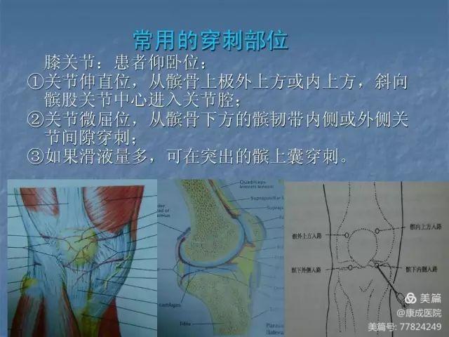 膝关节穿刺点,可在髌骨内下、外下、内上、外上约1cm处。